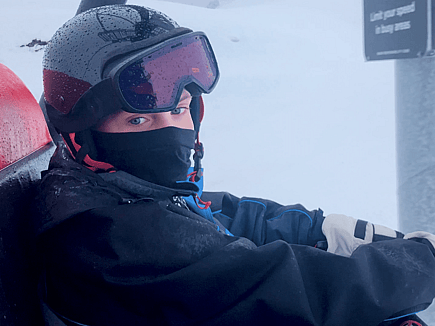 Two siblings share a ski-lift, but their playful conversation masks a painful truth .